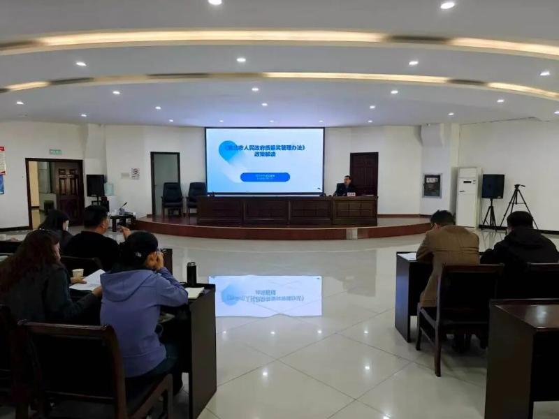 为全面推广先进质量管理模式,扎实做好第十一届淮北市政府质量奖申报工作,4月23日,淮北市市场监管局举办了2026年卓越绩效管理暨政府质量奖申报培训班。来自全市各县区及高新区市场监管局负责人、市局有关业务科室负责人,拟申报第十一届淮北市政府质量奖单位负责人、质量品牌提升行动培育企业负责人、重点产业链企业质量总监、首席质量官及质量工作具体负责人等180余人参加培训,市市监局二级调研员王红升作开班动员。