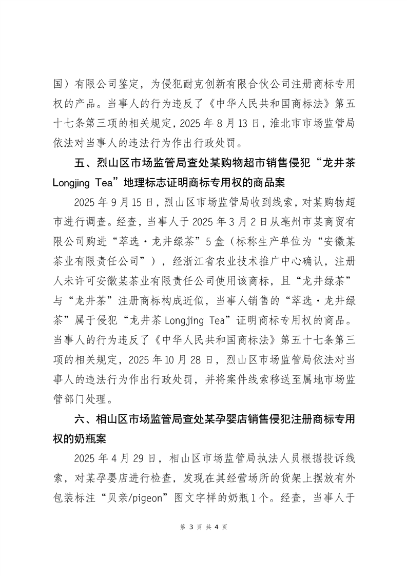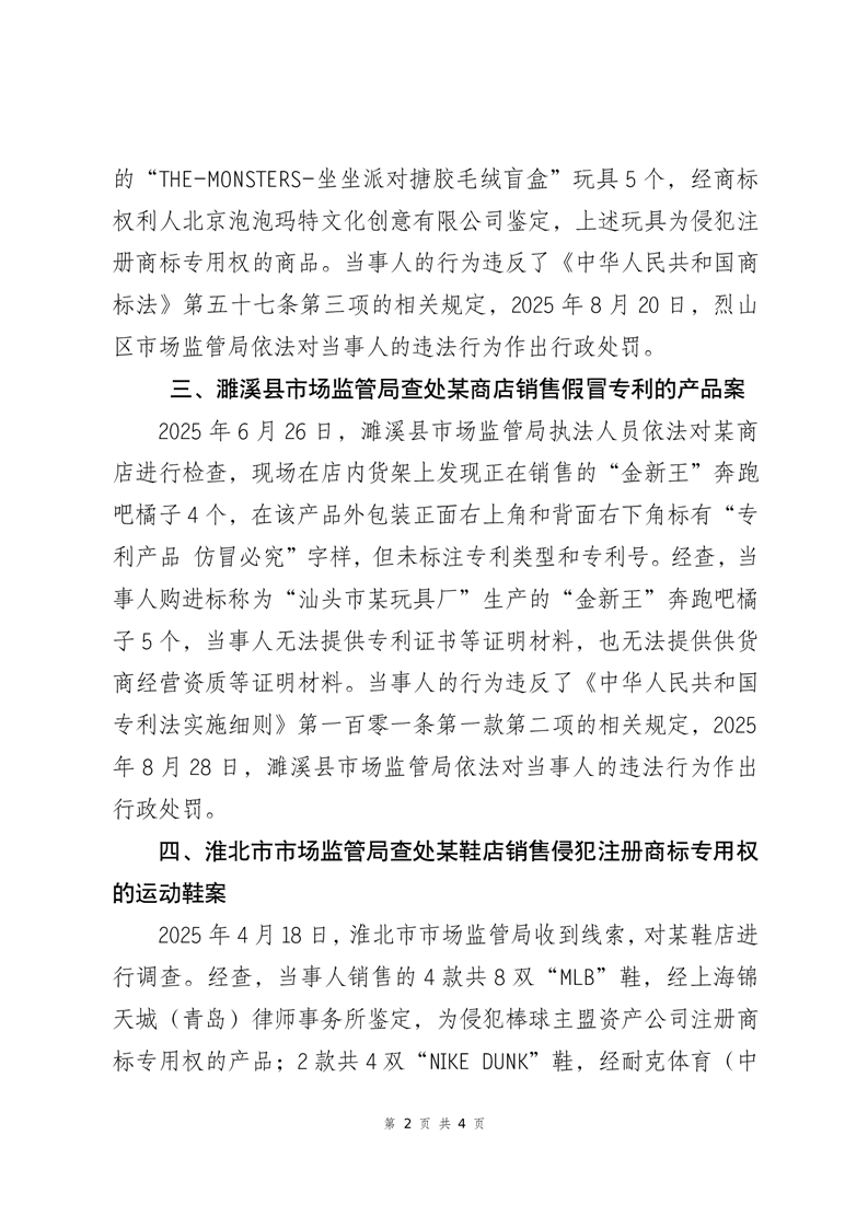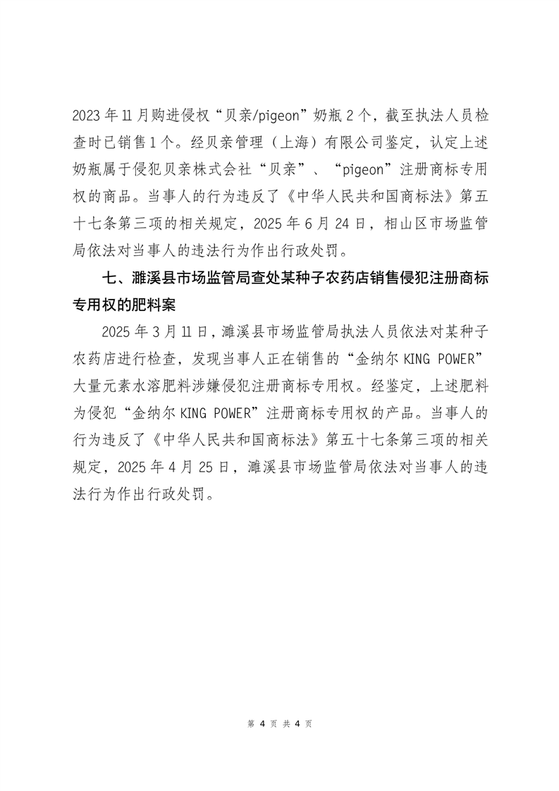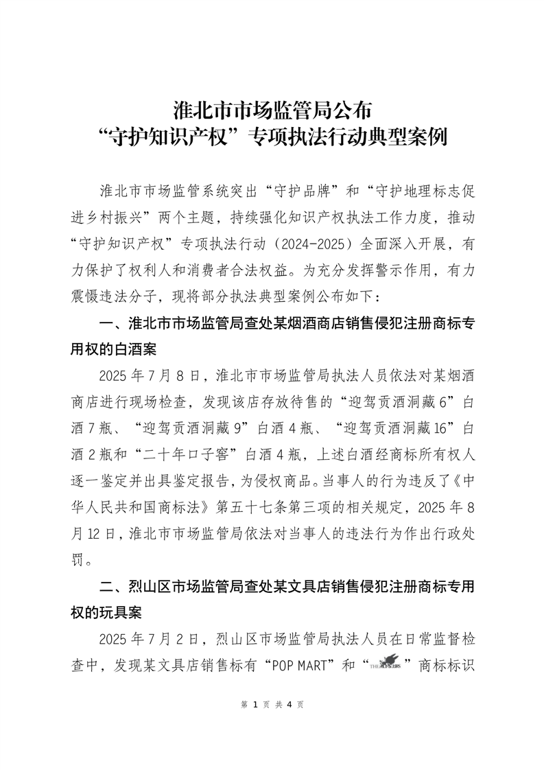 淮北市市场监管局公布“守护知识产权”专项执法行动典型案例