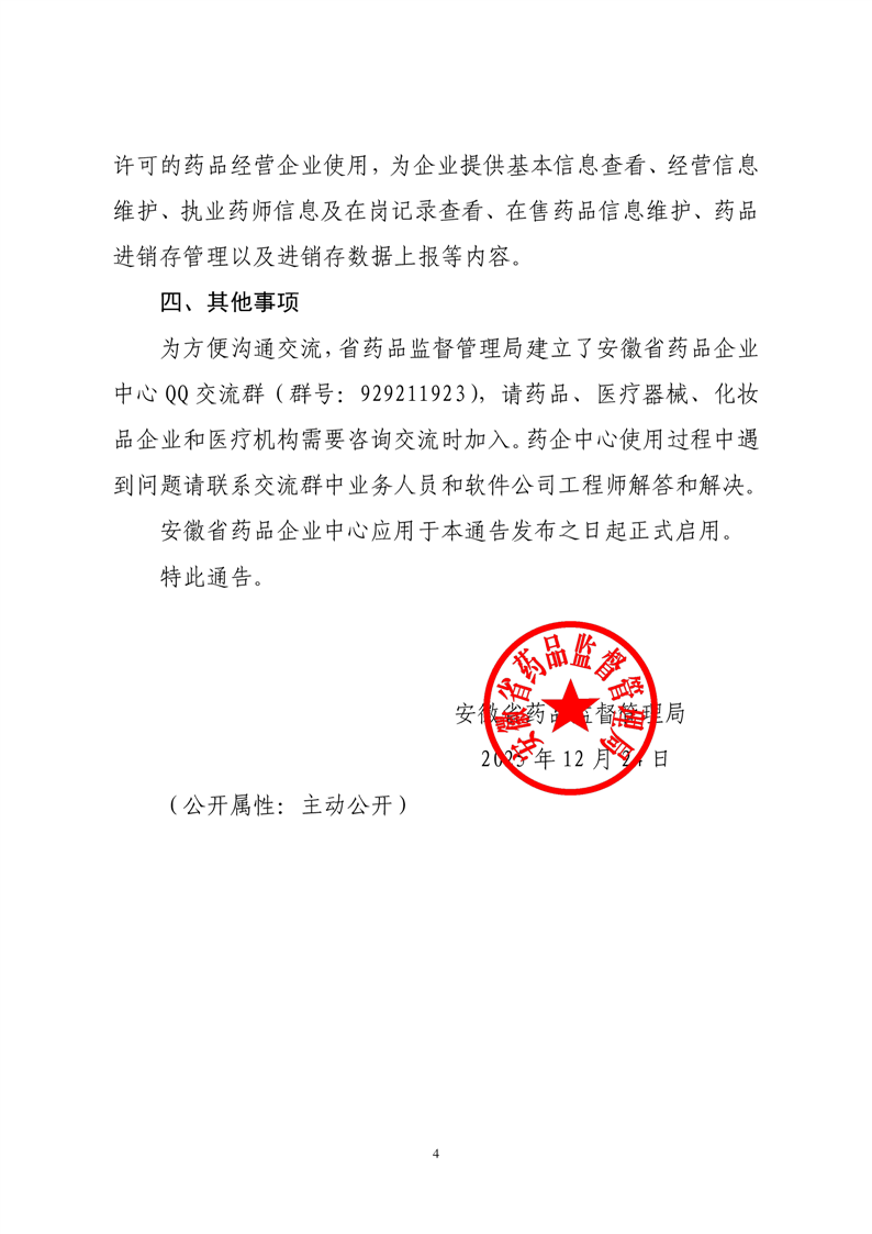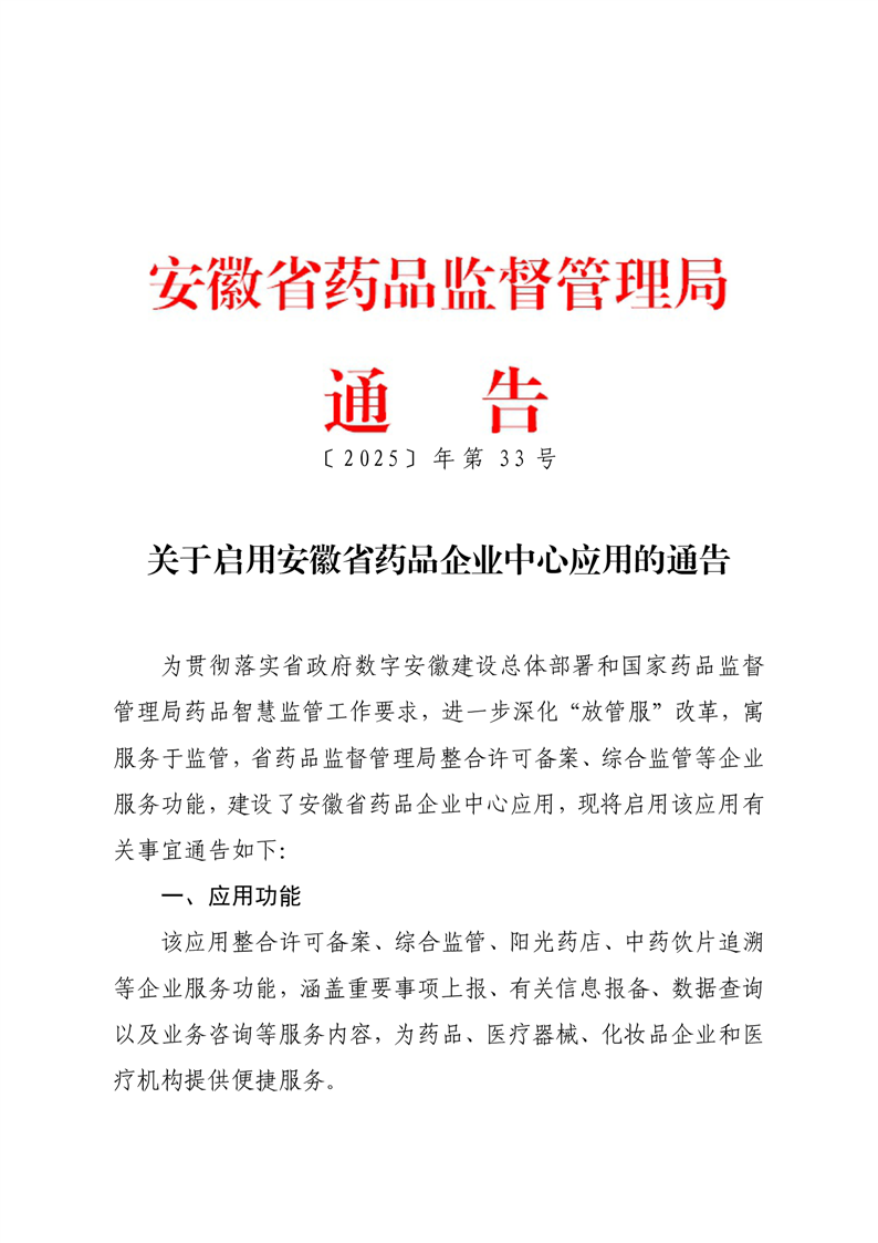 关于启用安徽省药品企业中心应用的通告