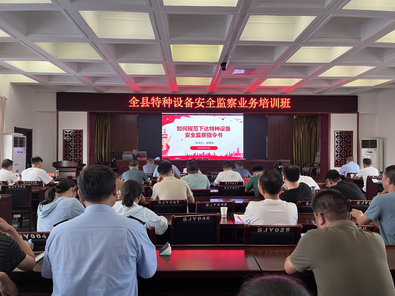 为进一步提升基层市场监管人员特种设备专业知识能力,贯彻落实党的二十大精神和习近平总书记关于安全生产重要论述,有效构筑特种设备安全屏障,2023年7月12日下午,濉溪县市场监管局组织开展2023年特种设备安全监察业务专题培训班,全县13个市场监管所、综合行政执法大队共50人参加培训。