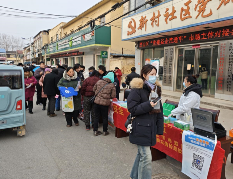 岁末年初,食品消费进入旺季,农村地区节日聚餐增多,食品安全风险隐患不容忽视。为切实守护群众“舌尖上的安全”,日前,烈山区市场监督管理局走进古饶镇新村社区开展“你点我检、你送我检”食品安全专项抽检活动,将监管服务送到群众家门口,让食品安全看得见、摸得着。