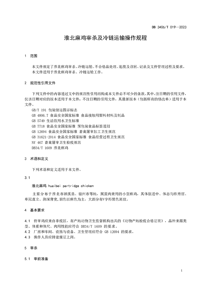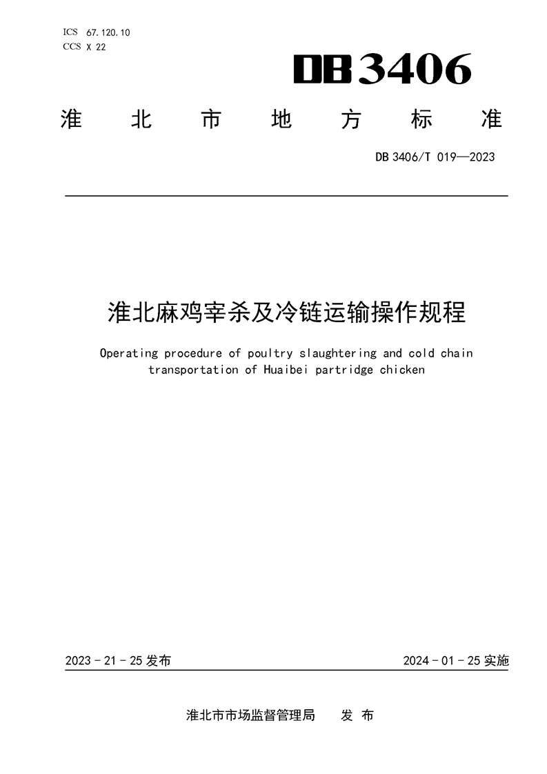 【标准】淮北麻鸡宰杀及冷链运输操作规程 |