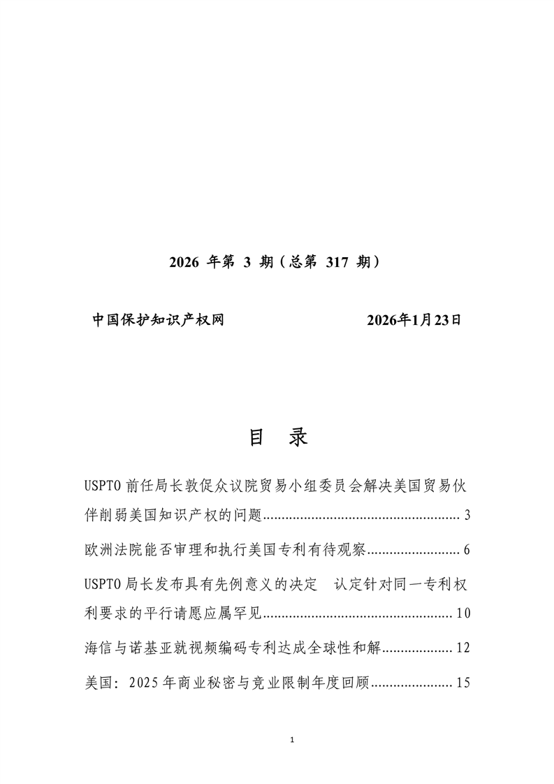 【知识产权】知识产权每周国际快讯2026年第3期 |