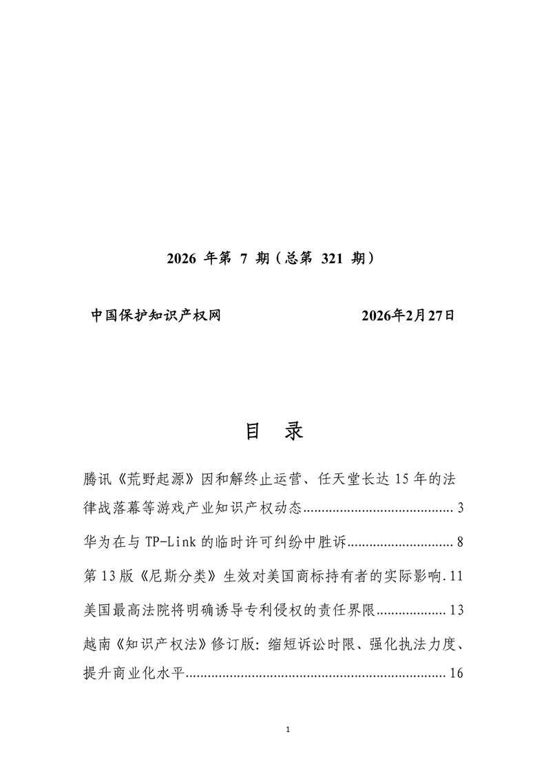 【知识产权】知识产权每周国际快讯2026年第7期 |