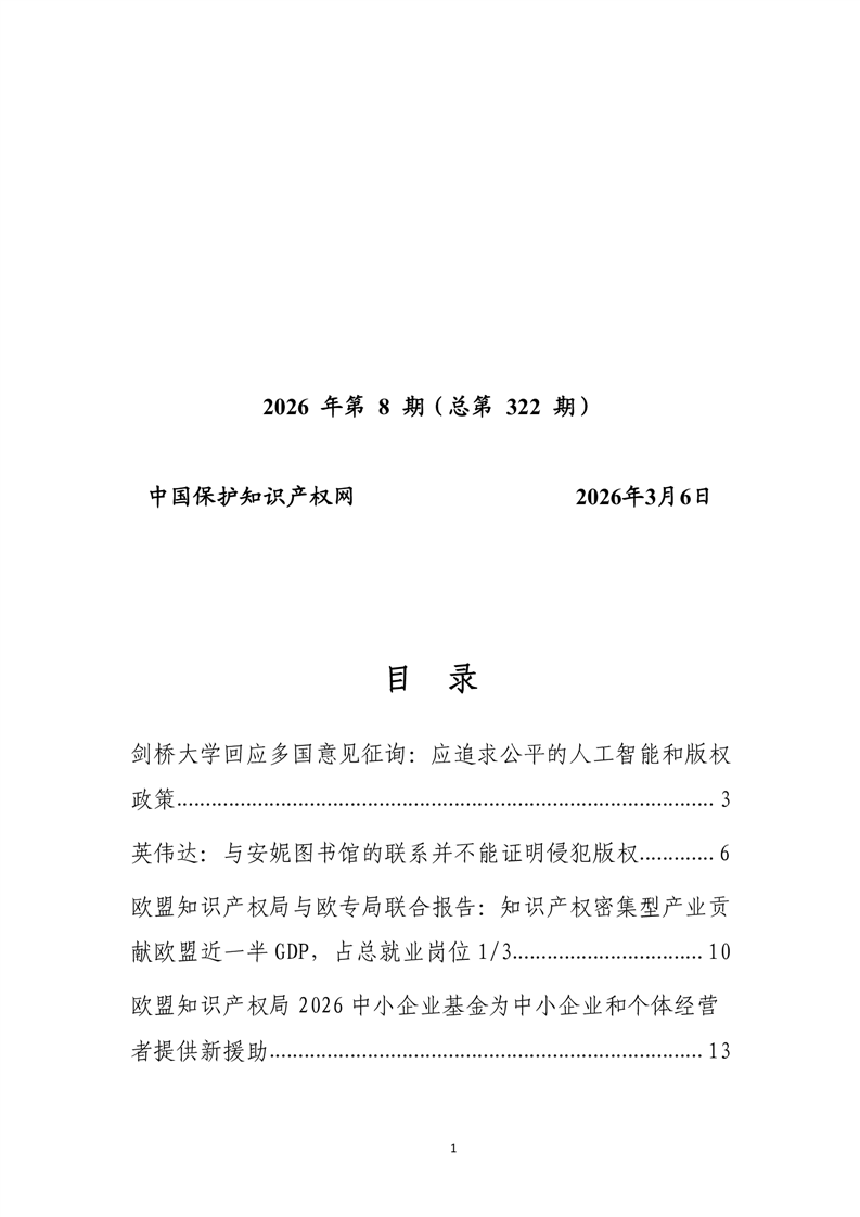 【知识产权】知识产权每周国际快讯2026年第8期