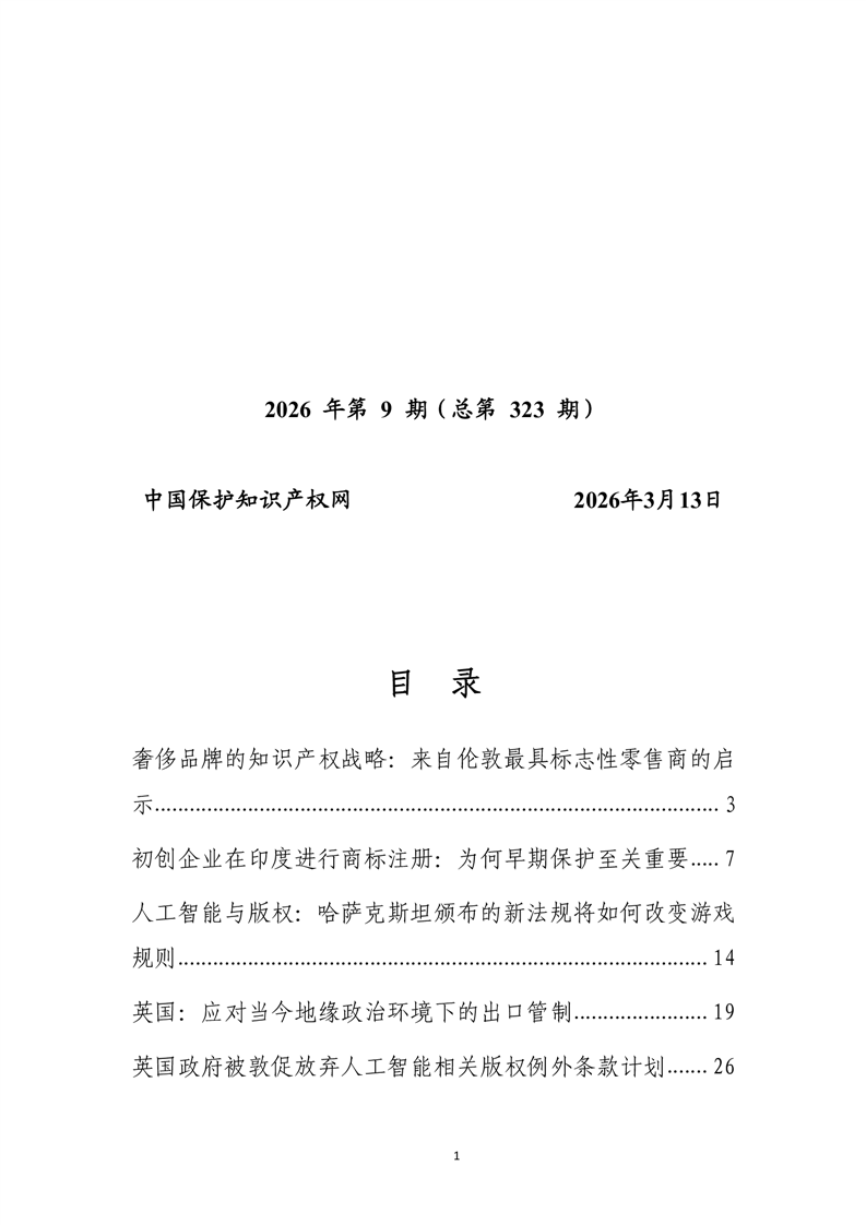 【知识产权】知识产权每周国际快讯2026年第9期 |